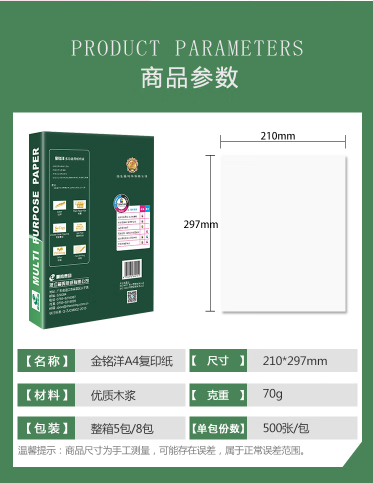 晨鳴chenming金銘洋A4打印紙復(fù)印紙70克木漿紙a4打印紙厚款多功能復(fù)印紙辦公室文件打印 金銘洋70克A4-5包